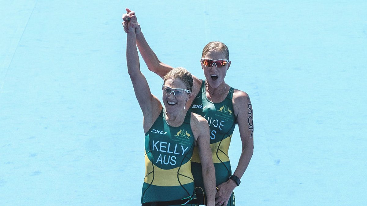 (Photo: Australia's Katie Kelly (L) celebrates with her guide Michellie Jones during women's triathlon Credit: Getty Images)
