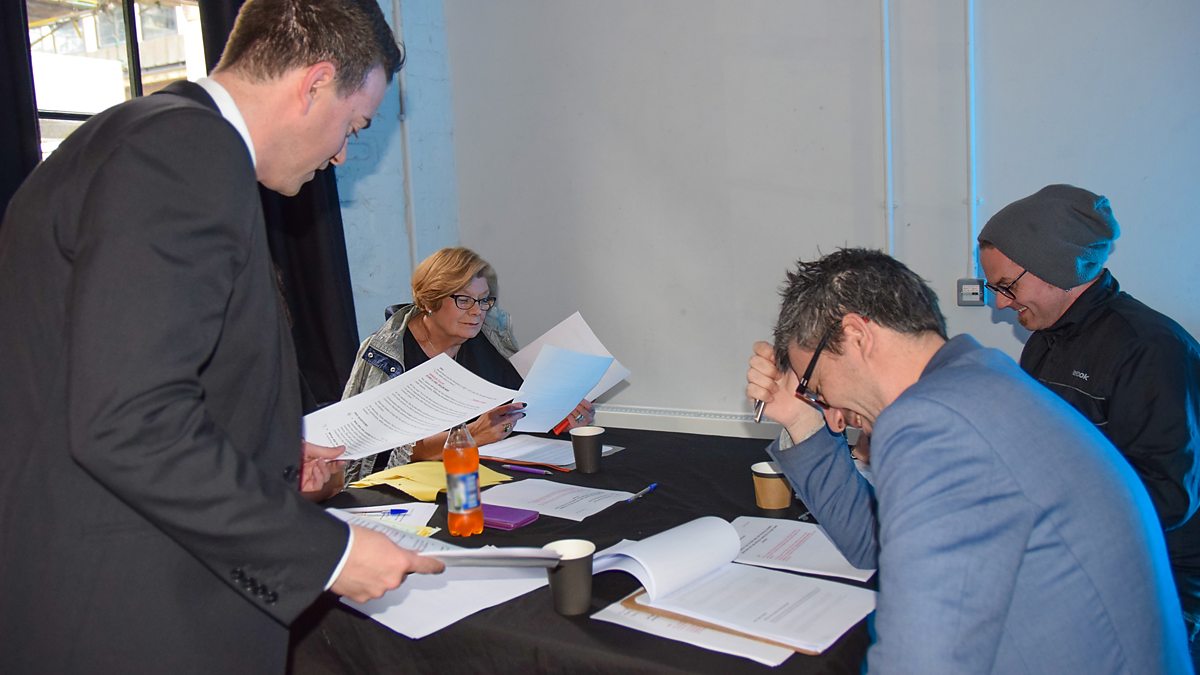 Des Clarke with Fiona Ross, Daisy Earl, Keir McAllister and Billy Kirkwood