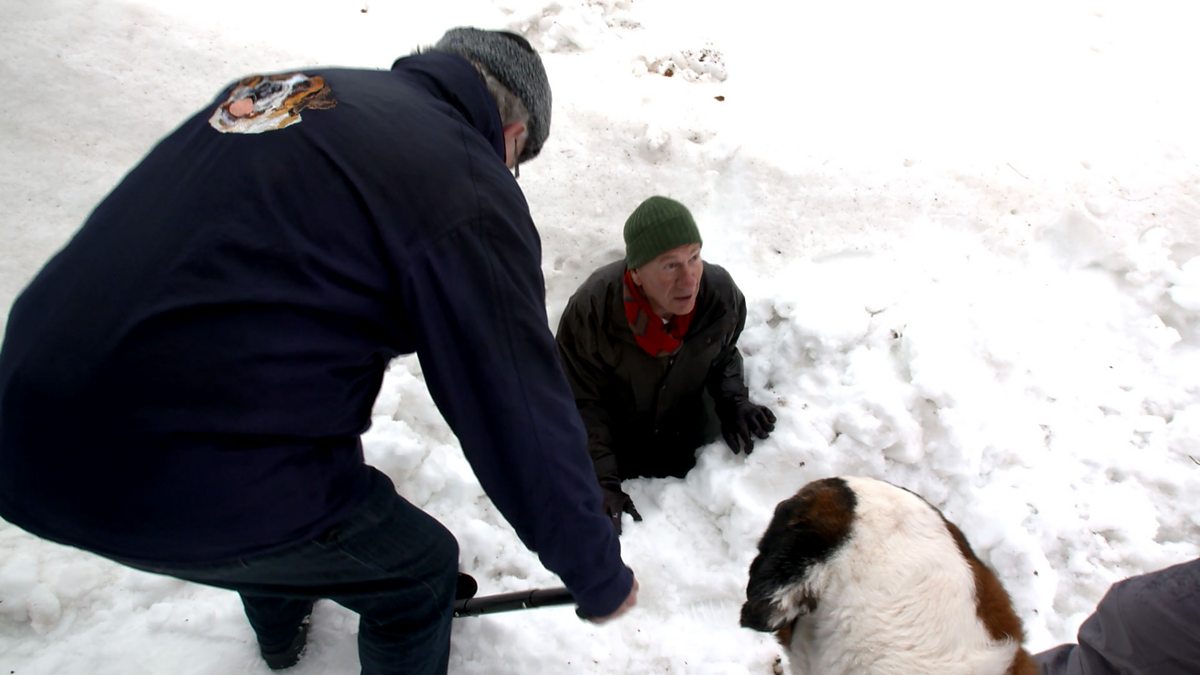 Will four year-old puppy Easy come to Michael's aid when he is buried in the snow?
