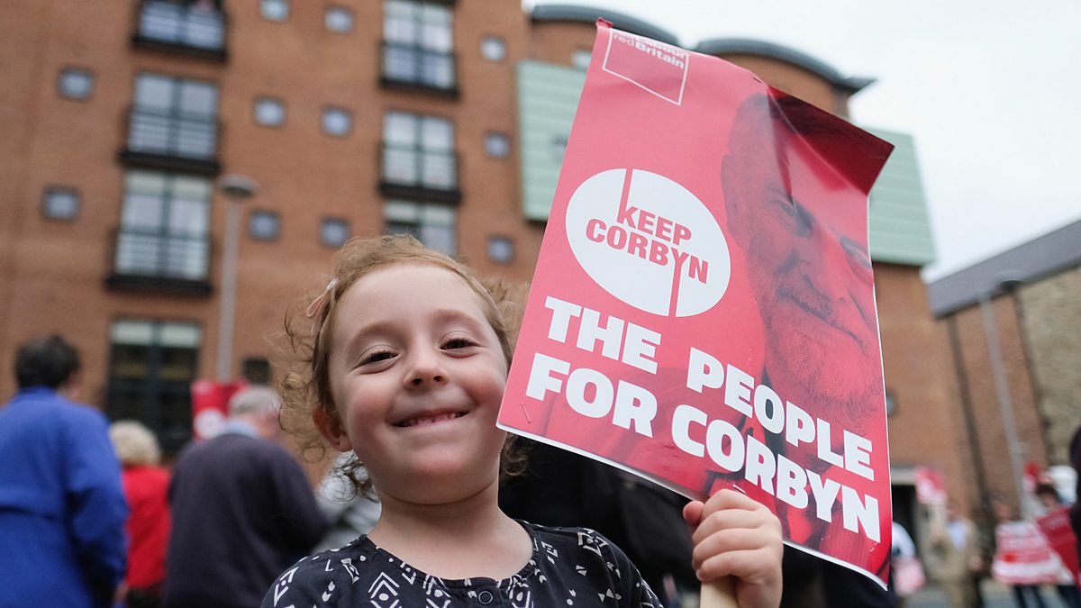(Image: Child holds a Jeremy Corbyn placard. Credit: Getty Images)
