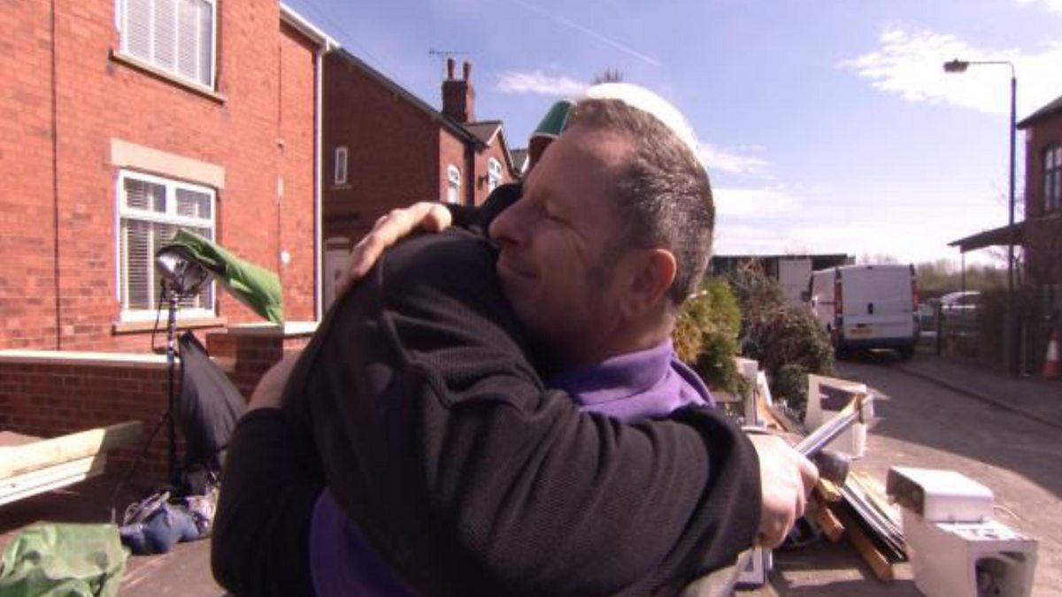 With Mark stressed over the build, a Jules' hug is called for to settle his nerves. Mark is calmed but has awoken his other body parts.