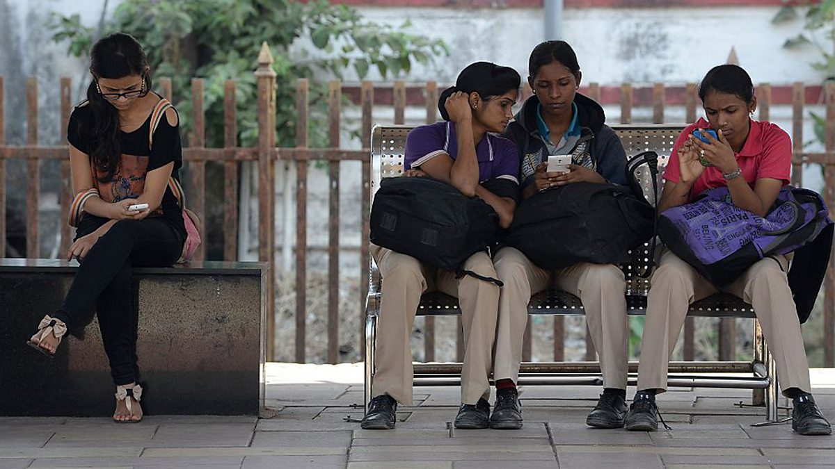 (Photo caption: Indian women check their mobile telephones © Indranil Mukherjee/AFP/Getty Images)