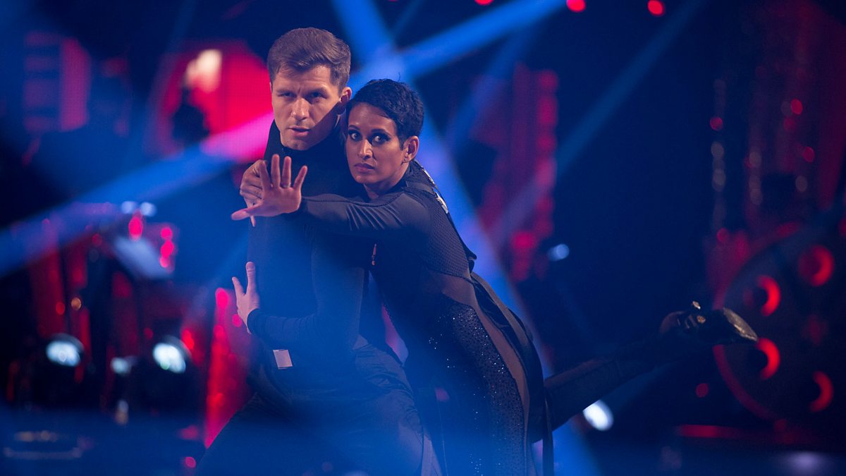 Naga Munchetty and Pasha Kovalev dance the Tango to Theme from Mission Impossible.