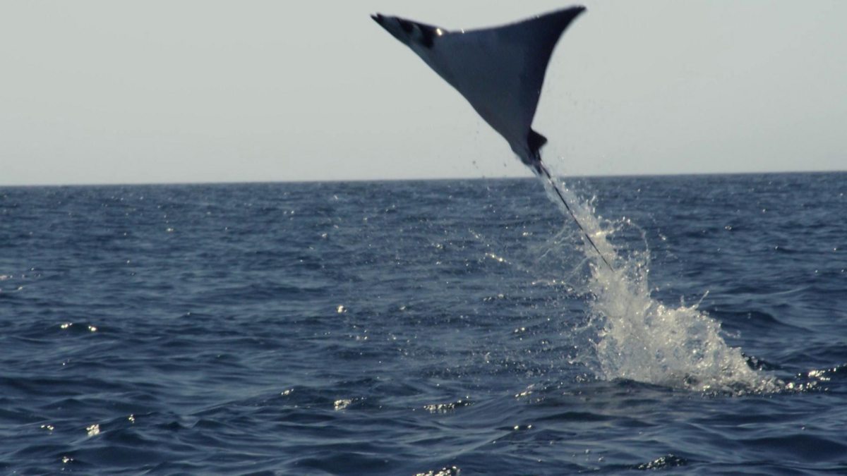 In the Sea of Cortez, a large school of mobula rays are hunted by orcas. Their only defence is speed and safety in numbers.