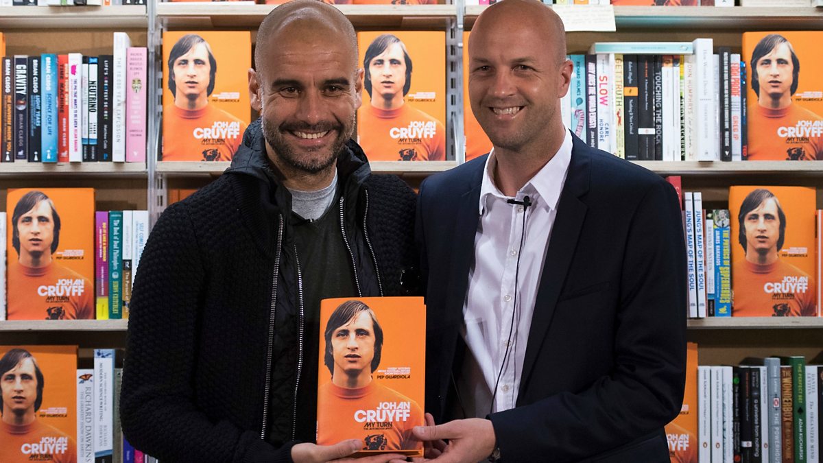 (Photo: Pep Guardiola and Jordi Cruyff promoting Johan Cruyff's autobiography, Credit: Getty Images)