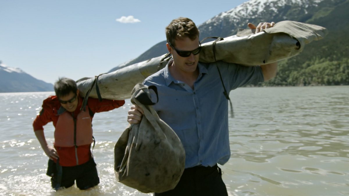Dan, Kevin and Felicity start their epic journey by wading through icy Alaskan water.