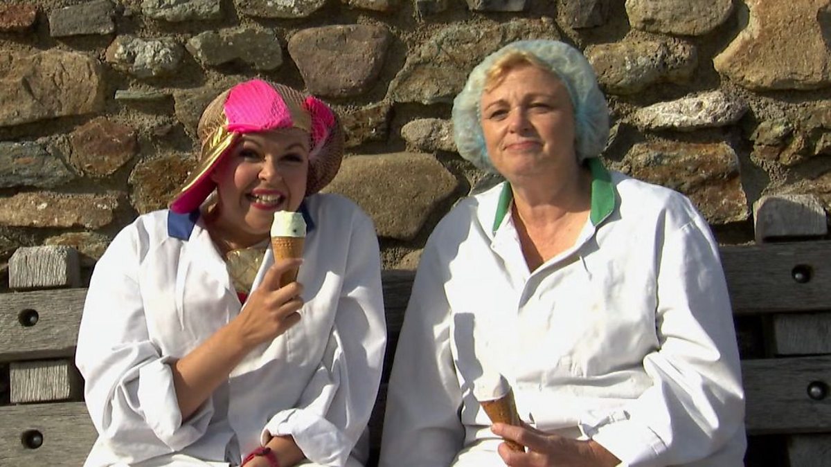 Mae Dona'n gweithio mewn ffatri hufen iâ gyda Helen. Come and join Dona Direidi as she tries her hand at all sorts of different jobs. Today she works in an ice cream factory with Helen.