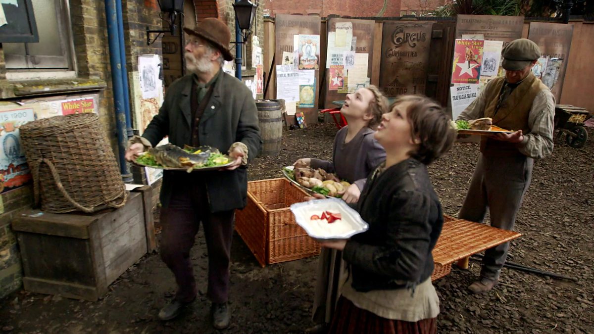 The slum residents enjoy and unexpected feast when Edward VII's cancelled coronation banquet turns up at their door.