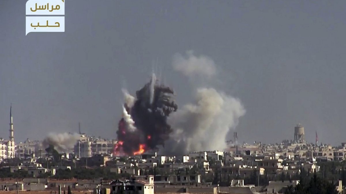 (Photo: A picture, released by Fatah al-Sham Front rebels, purportedly shows black smoke rising from a bomb attack against Syrian government forces in western Aleppo on 3rd November 2016. Credit: Militant video by Fatah al-Sham Front, via AP)