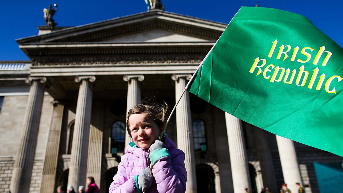 (Photo: A young girl waves a green flag with the words Irish Republic. Credit: Getty Images)