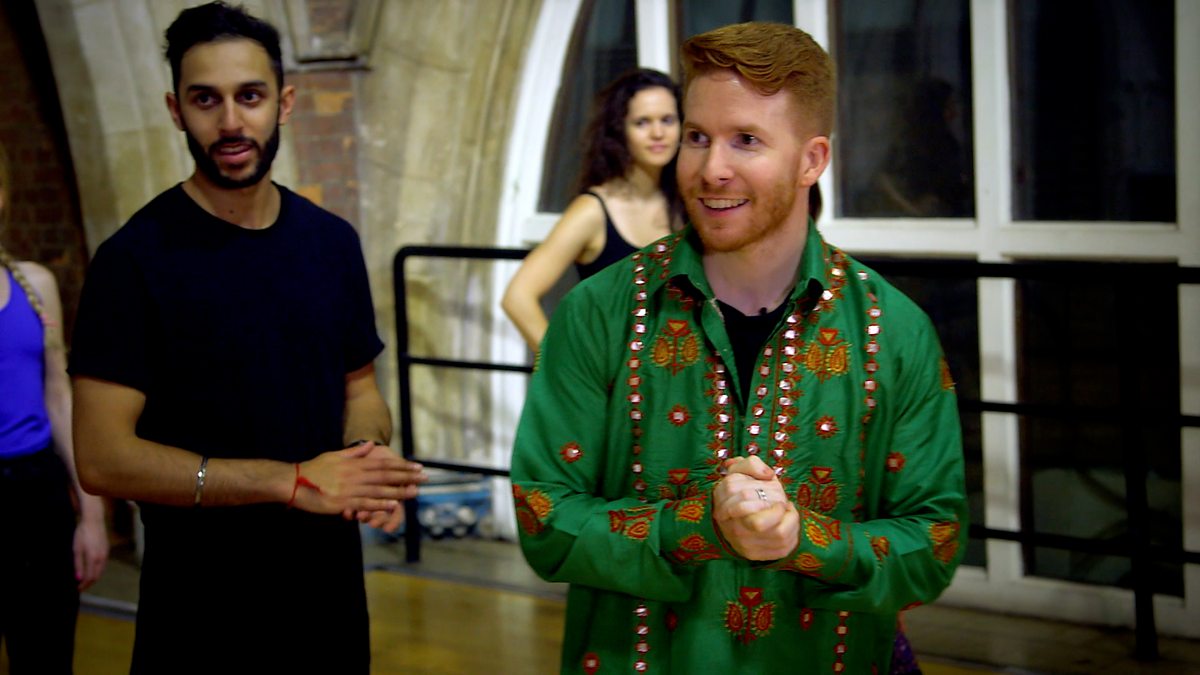 Neil tries his hand at 'Bangra' - a dance that originates in Punjab region of India and Pakistan.