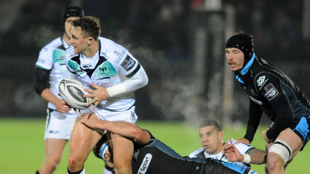 Cyfle i weld y Gweilch ar daith i Glasgow yn y Guinness PRO12. A chance to see the Ospreys' Friday night match away to Glasgow in the Guinness PRO12. English sound-track available.