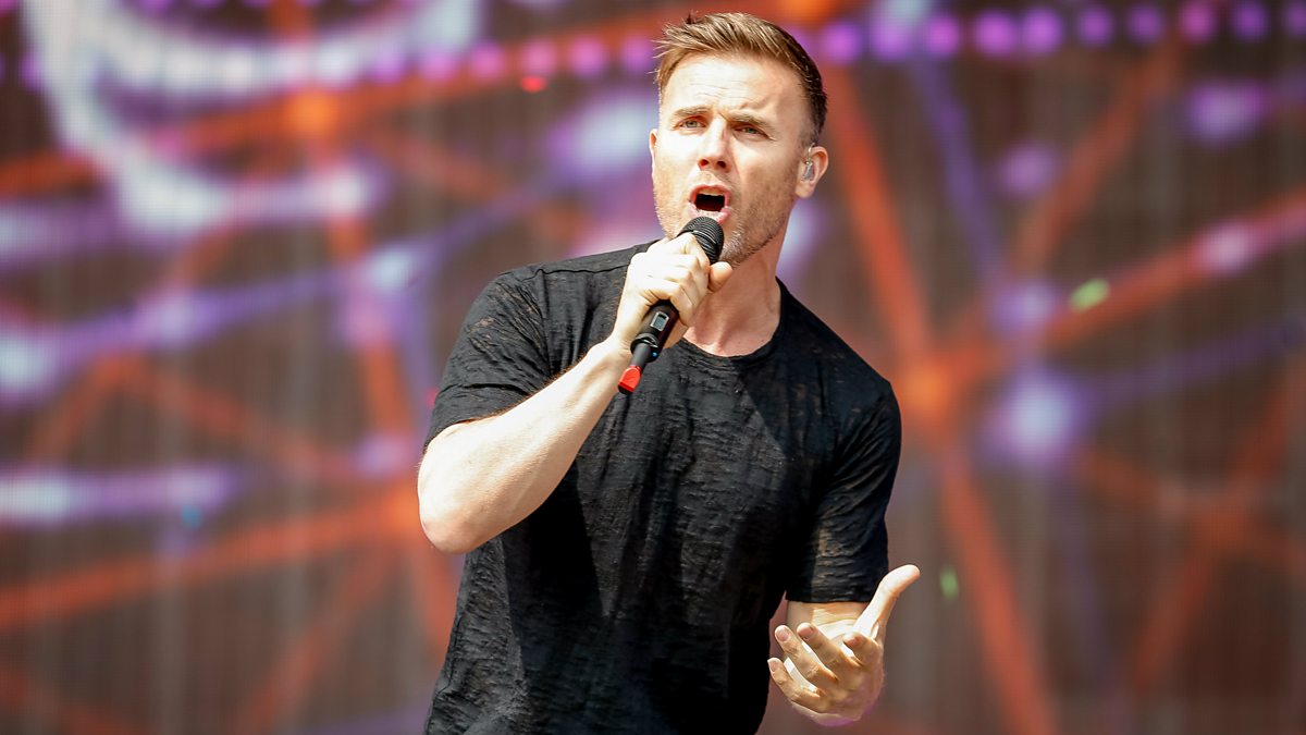 Gary Barlow hears the Take That For Hire auction total, live from his gym toilet!