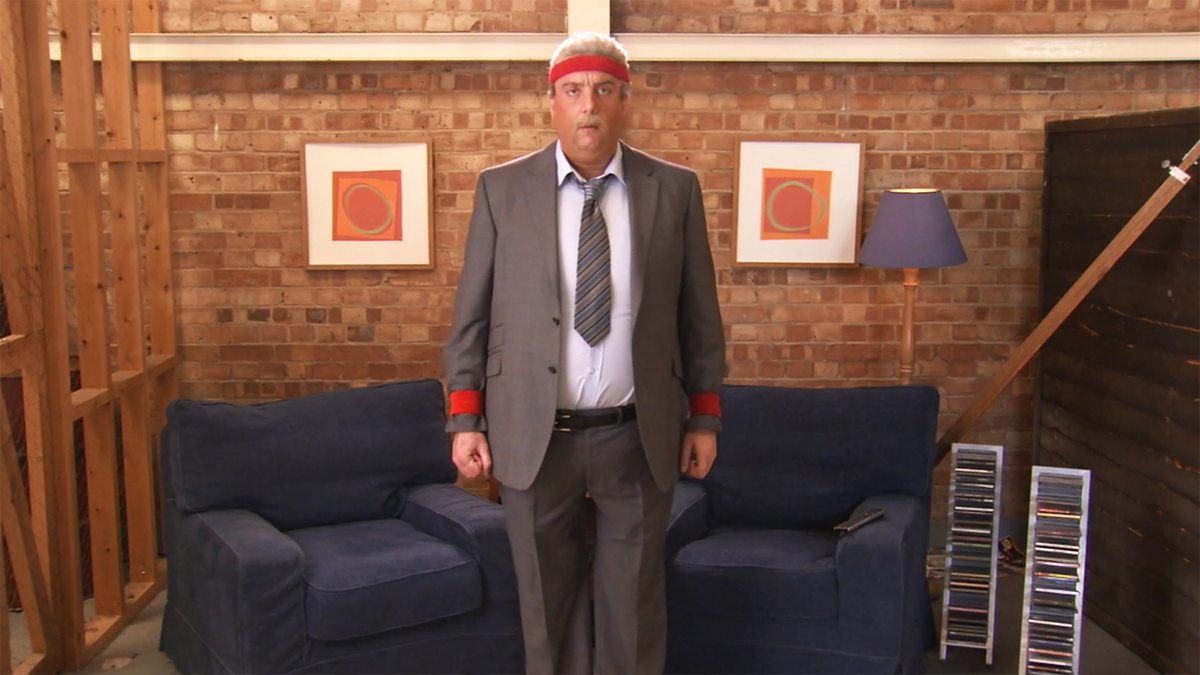 This clip is another parody of fitness DVDs. In this clip, slapstick and absurdity are also used to suggest to the viewer several ridiculous ways of getting fit, whilst also poking fun at the free giveaways that these DVDs often involve.