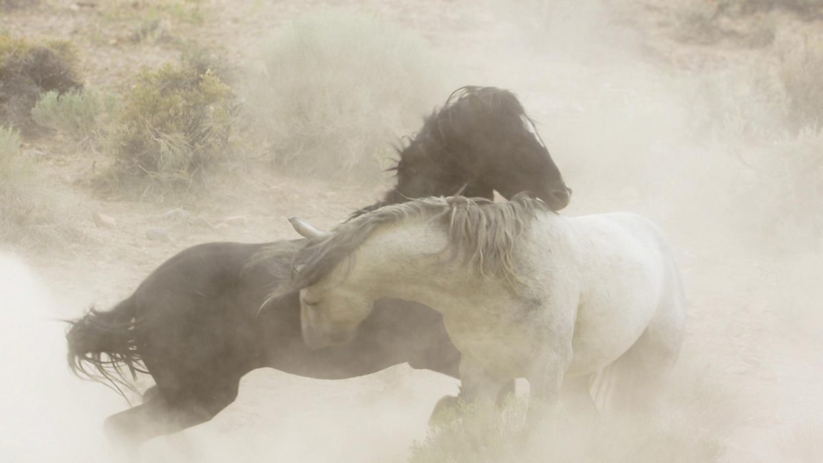 In the deserts of Nevada stallions battle to determine who controls access to water and females.