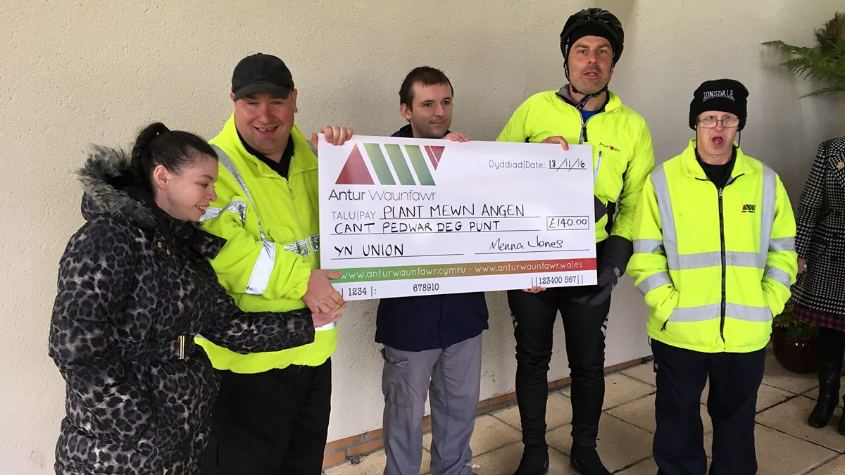 Ysgolion o Borthmadog i Fangor yn cefnogi Aled ar ei daith er budd BBC Plant Mewn Angen.