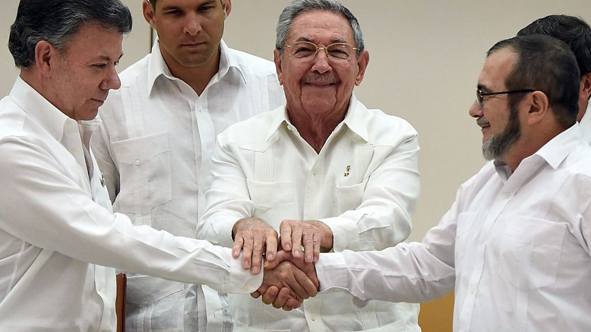 President Juan Manuel Santos has been awarded the Nobel Prize for Peace, but the people rejected his deal with the leader of The Farc in a referendum. A new deal has been signed, but will it have legitimacy without a second referendum?