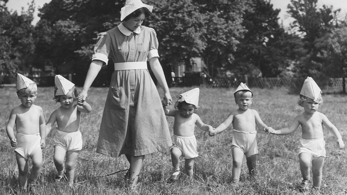 (Picture: Nurse enjoying a sunny day with five of the children at a home in Essex, England; Credit: Fred Morley/Fox Photos/Getty Images)