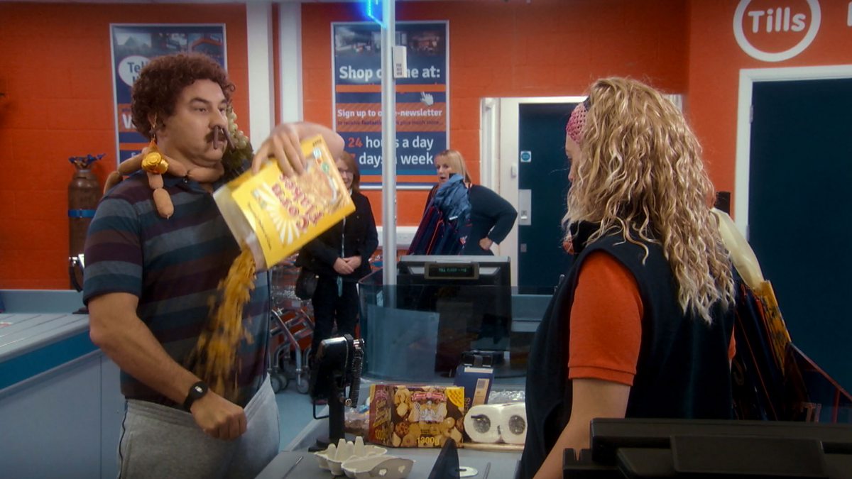 A stubborn shopper goes to great lengths to avoid paying for a bag.