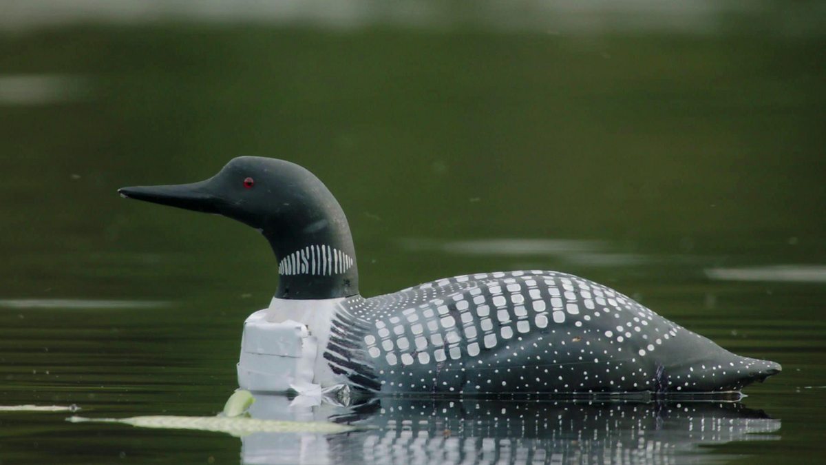 Kate Humble joins two scientists on a lake on Yellowstone NP, as they try to capture a loon, using a decoy loon.
