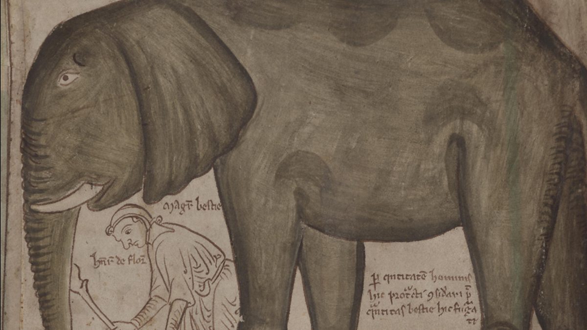 Christopher de Hamel, Fellow and Librarian of The Parker Library at Corpus Christi College, Cambridge, shows Andrew Marr the first picture of an elephant in England. It was drawn by Matthew Paris, the chronicler of St Albans for his Medieval manuscript The Chronica Maiora and depicts an African elephant, housed in the Tower of London in 1255 and fed on meat and wine.