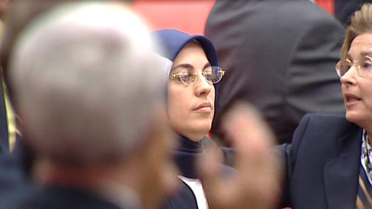 Merve Kavakci was elected as an MP for the pro-Islamic Virtue Party and she tried to take her oath of office wearing a headscarf. But she was jeered out of parliament.