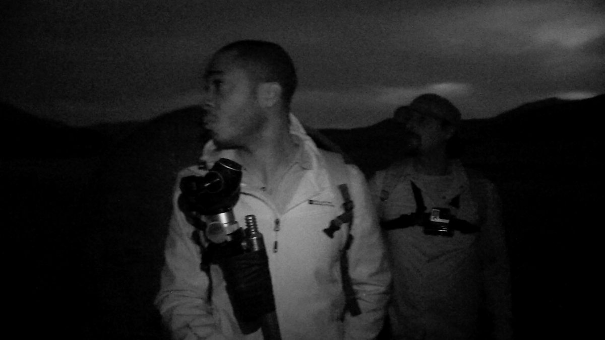 It's dark and Patrick & Casey have to leave the relative safety of the hide, but it’s a two mile walk back to the vehicles, and there are many grizzly bears still in the meadow.