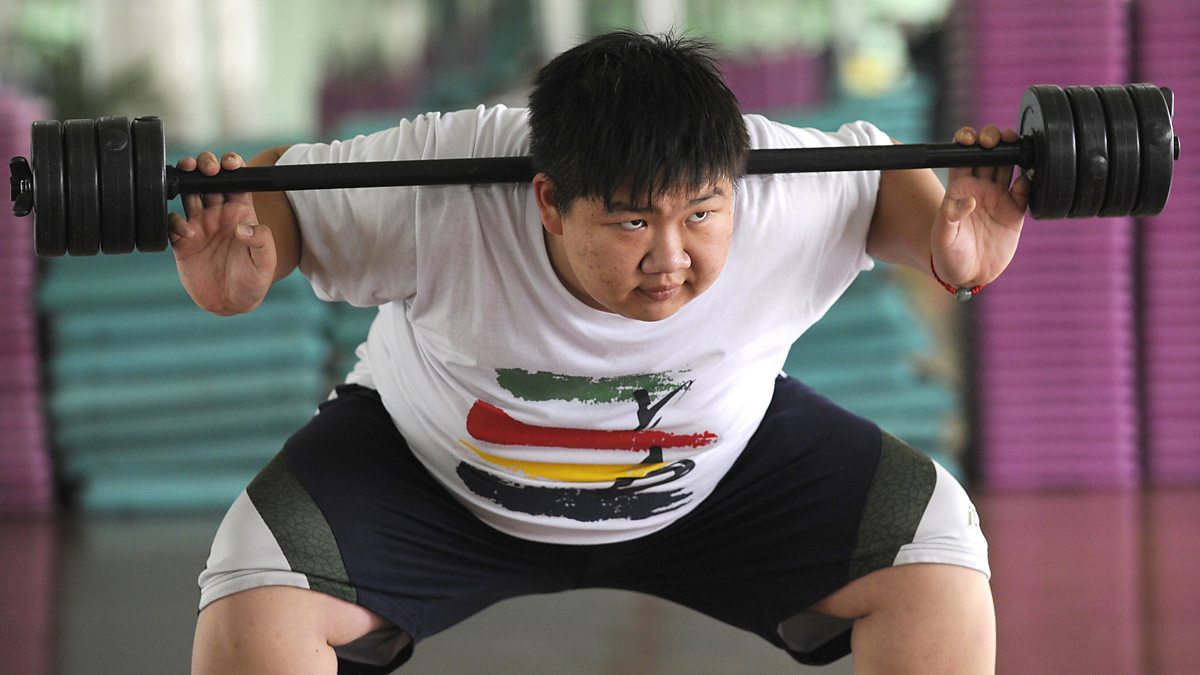 Photo: A man works out at a slimming centre in Beijing, credit: LIU JIN/AFP/Getty Images