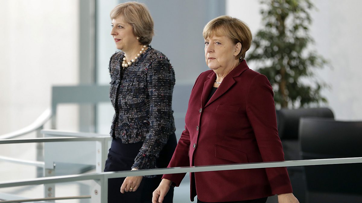 (Photo: German Chancellor Angela Merkel and Britain's Prime Minister Theresa May arrive for a statement prior to a meeting at the Chancellery in Berlin, Germany, on November 18, 2016. Credit: Getty Images)