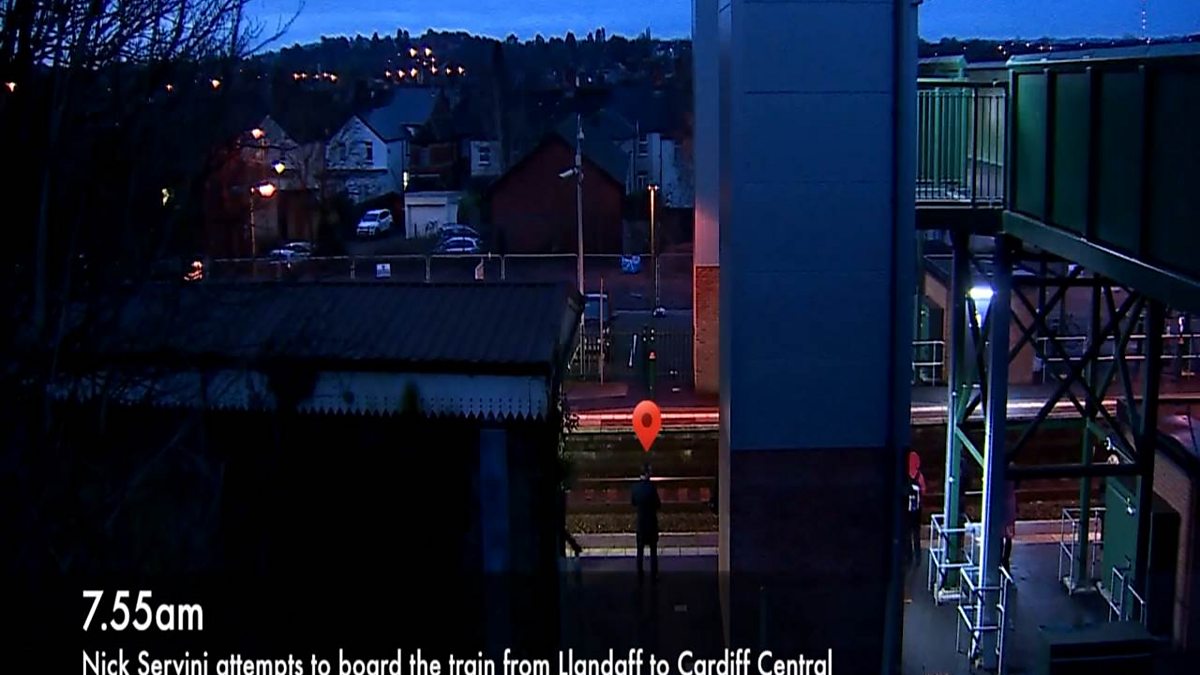 Reporter Nick Servini attempts to board a train from Llandaff to Cardiff Central