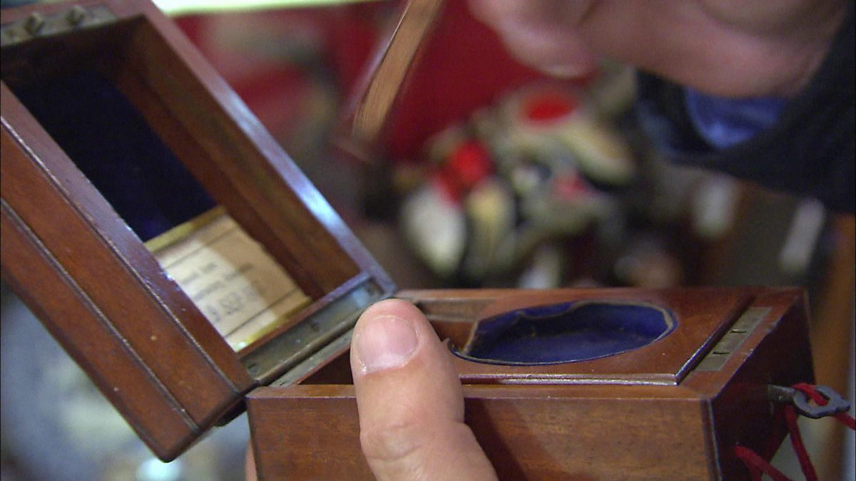 The provenance of Mark's mahogany compass box certainly helped attract bidders. Selling for more than six times the purchase price it left this chatty expert quite speechless!