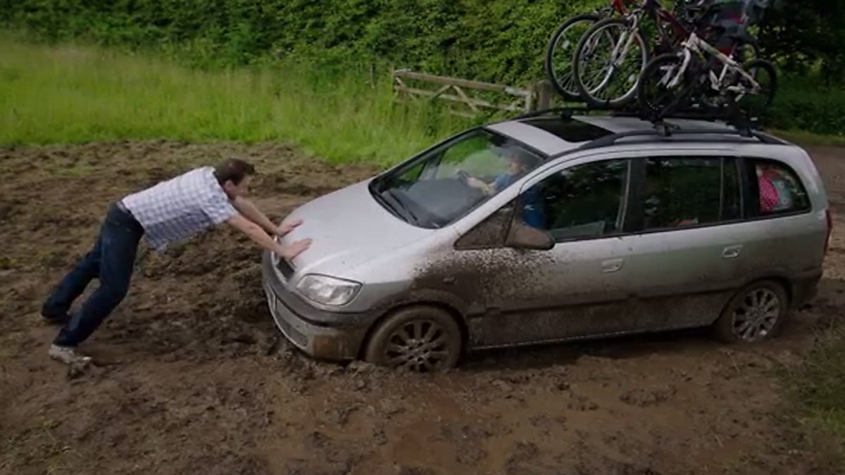 Racing against time to catch a Ferry to France the family hits traffic and, much to Lucy’s dismay, Lee decides to take a shortcut. Unfortunately the shortcut doesn’t go quite to plan and Lee takes a wrong turn driving the car into a muddy field.