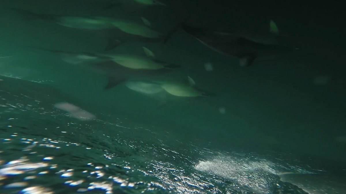 Irish Adventurer Gavan Hennigan has sent us this amazing footage of dolphins swimming underneath him as he rows across the Atlantic Ocean in the one of the world's toughest rowing challenges.