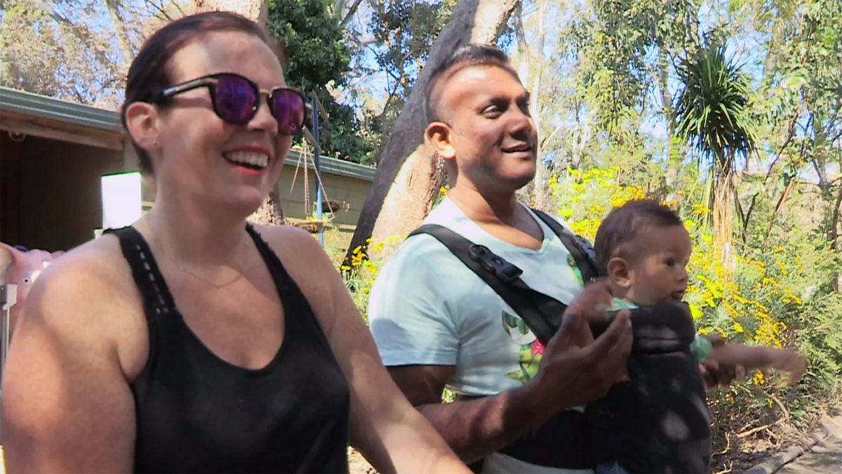 The Farooq family enjoy a day at a wildlife park in the Adelaide hills during their trial week in Australia.