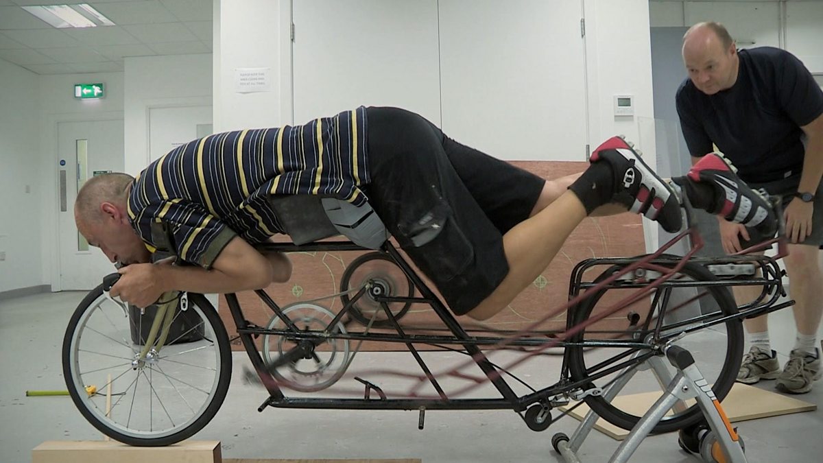 Cyclist Graeme Obree attempts to break a world record on his self-built bike.