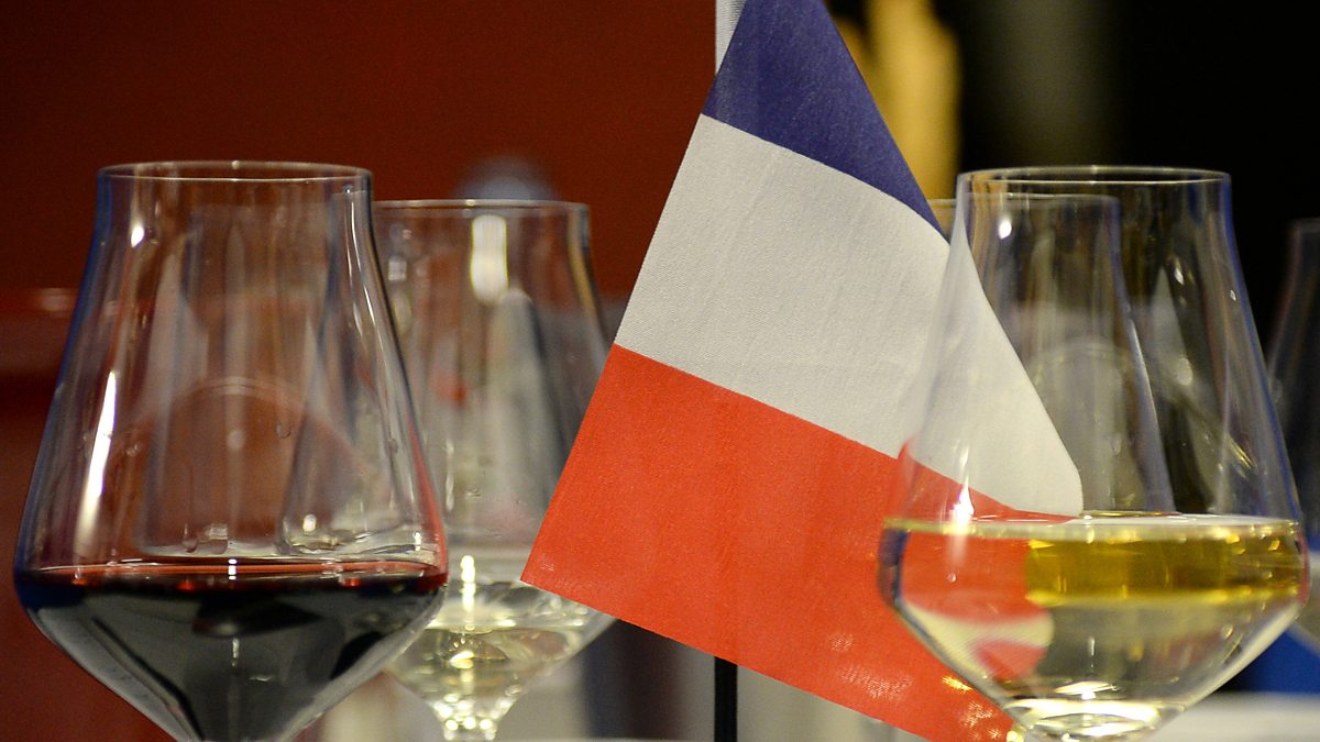 (Image: The French flag amid wine glasses. Credit: Boris Horvat/ Getty Images)
