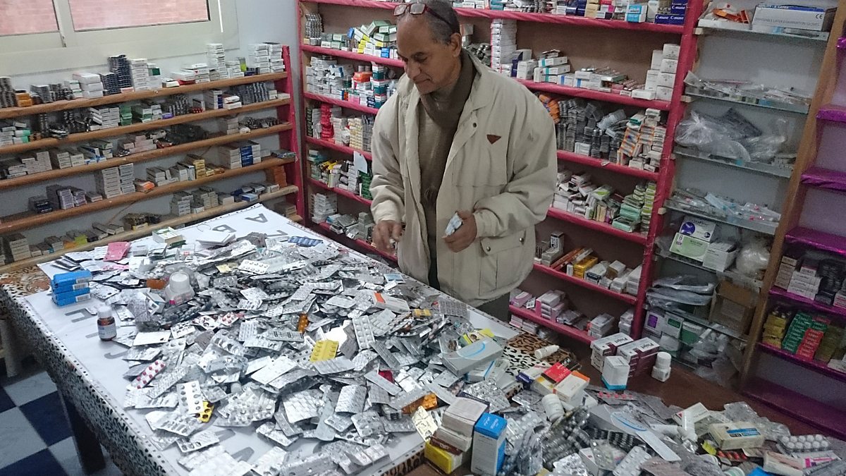 (Photo: Donated second hand drugs in an Egyptian pharmacy)