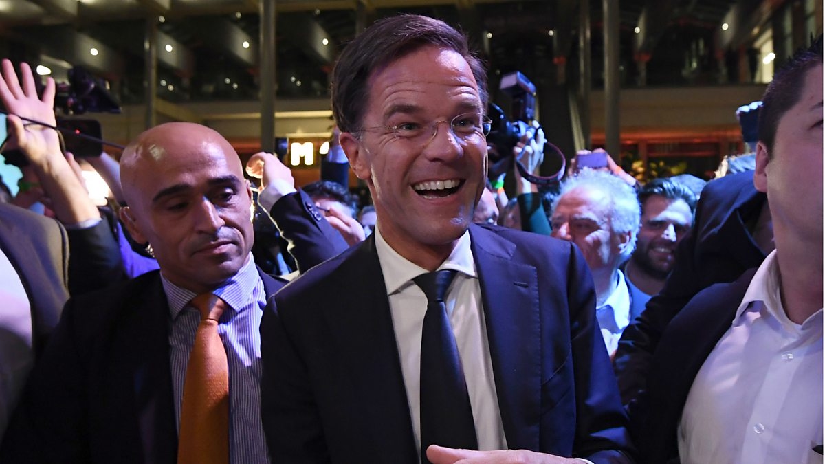 Picture - Dutch Prime Minister Mark Rutte is greeted by supporters as he arrives to make a speech following his victory in the Dutch general election (Credit:Carl Court/Getty Images)