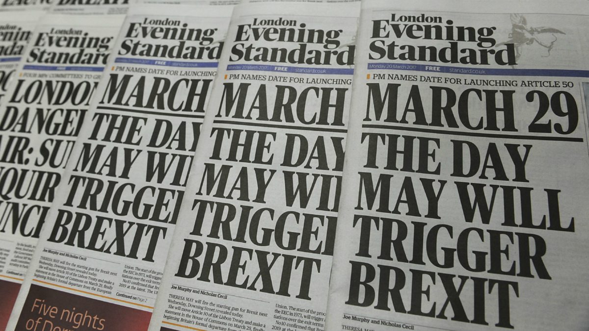 (Photo: The front page of the London Evening Standard newspaper reporting that Britain will launch the process of leaving the EU on 29 March 2017. Credit: Daniel Sorabji/AFP/Getty Images)