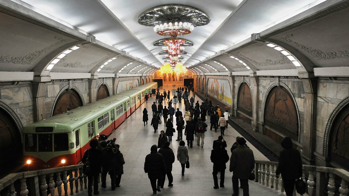 Image: Busy scene at a Pyongyang subway station.