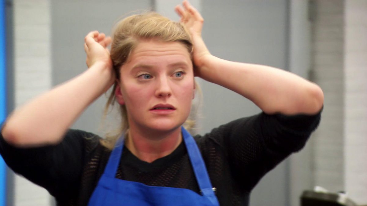 The final 14 battle against each other to cook one dish inspired by their childhood. There are split into two teams, blue and red, and its the blues who are cooking first.
