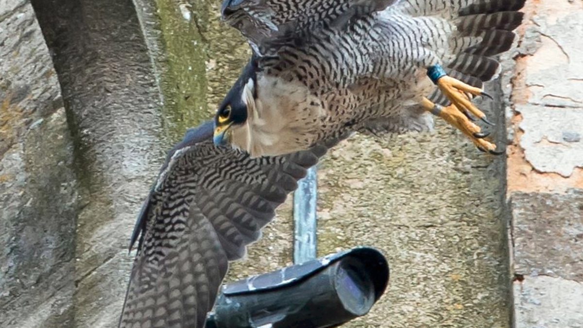 The chick, no more than two days old, hatched on the nesting platform at Norwich Cathedral run by the Hawk and Owl Trust.