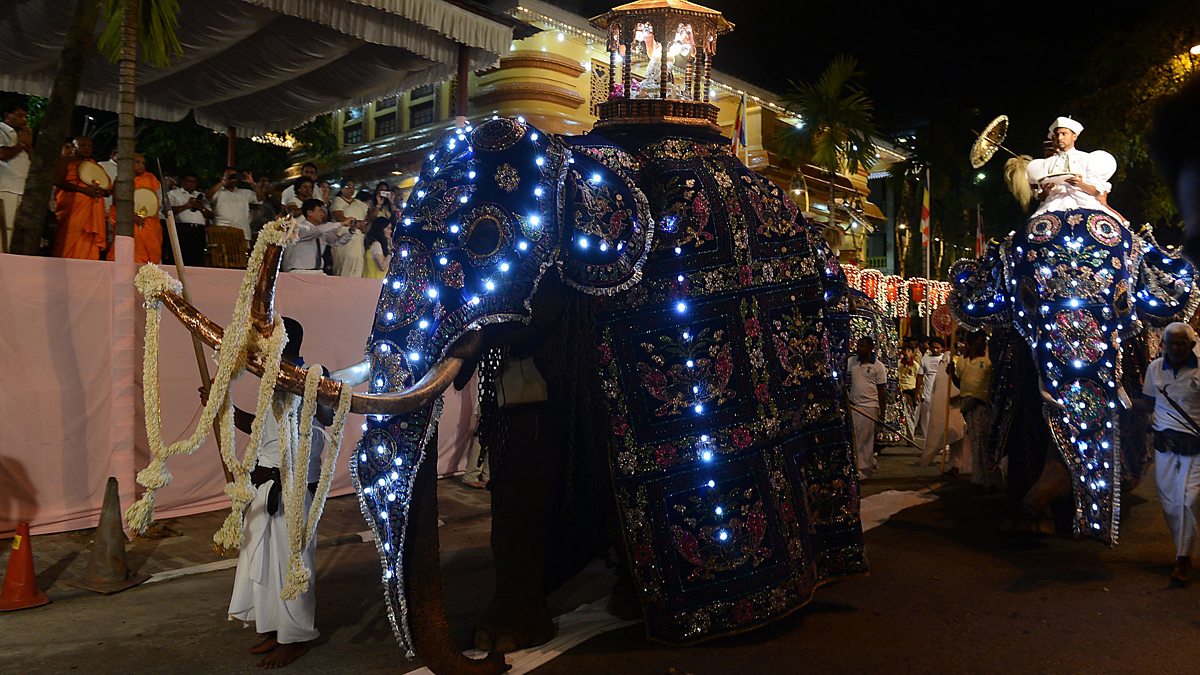 (Photo: An elephant carries a casket containing relics at the annual Nawam Perahera cultural pageant in Colombo, Sri Lanka. Credit: Getty Images)