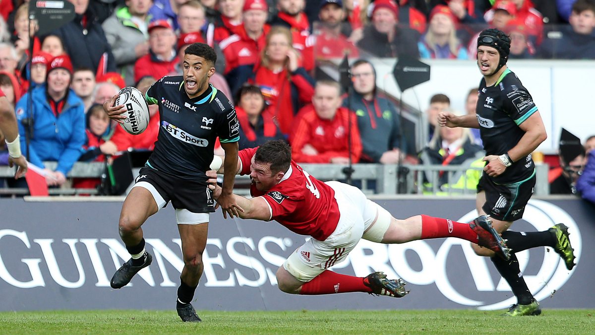 Darllediad byw o Munster yn erbyn y Gweilch yn rownd gynderfynol y gemau ail gyfle o Thomond Park. Live coverage of Munster v Ospreys in the play-off semi-final from Thomond Park. K/O 6.15.