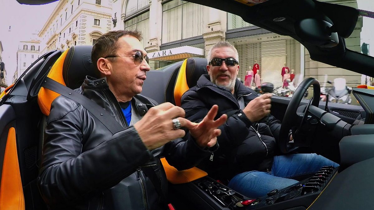 Around some of Rome's notorious junctions, Bruno Tonioli gives Paul a lesson in the art of driving like a proper Italian - in a bright orange Lamborghini Huracan Spyder.