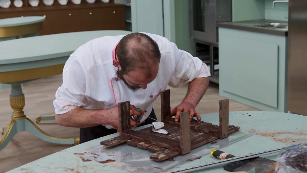 The judges discuss the final challenge whilst the teams get stuck in to building their showpieces
