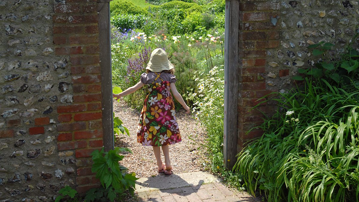 Photo: a young girl walks through an entrance to a walled garden (BBC)