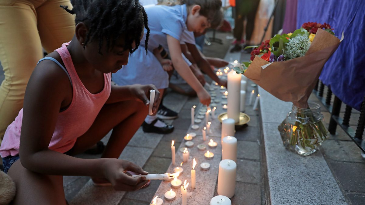 (Image: People pay tribute to victims of the fire in west London. Credit: Getty Images)