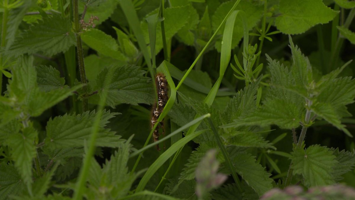 Brett Westwood meets a huge caterpillar who is chewing a leaf very, very loudly