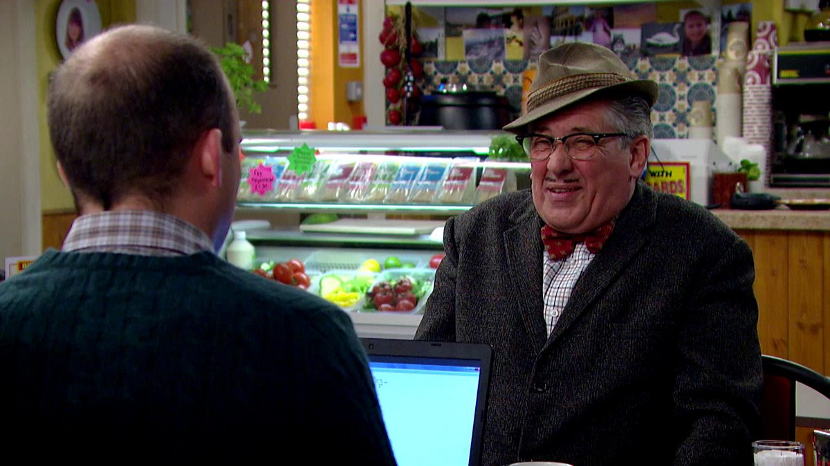 Arthur explains the finer details of a "soupover" - an old man version of a sleepover - to a sceptical Michael.